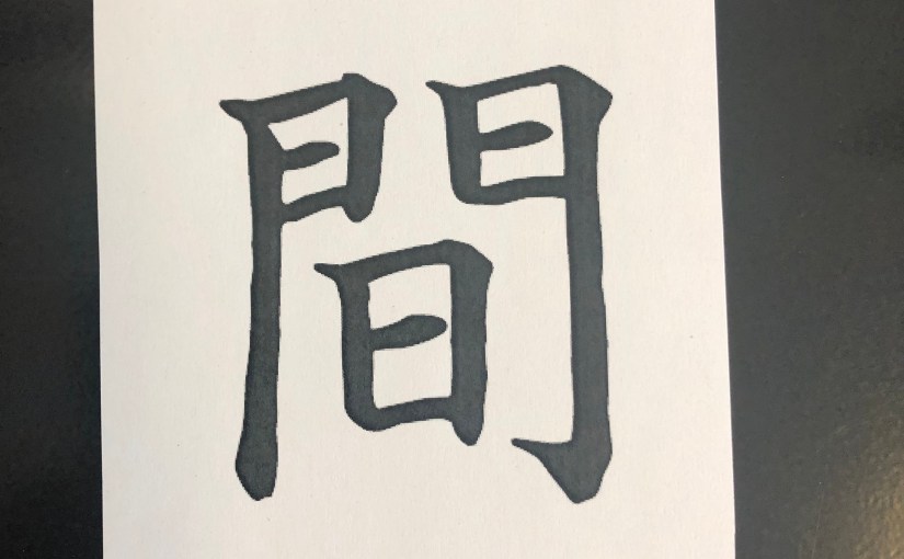 Das japanische Schriftzeichen für dem Zwischenraum (ma, s. Bild) enthält eine wunderbare Wegbeschreibung. Die Umrahmung aussen herum stellt ein Tor dar. Die Kästchen links und rechts mit dem verlängerten Strich sind die Torflügel und dazwischen steht das Viereck mit einem Querstrich, dem Zeichen für Sonne. Öffnet man das Tor und damit den Zwischenraum, können die Lichtstrahlen durchfliessen. Es braucht also beides: die Begrenzung und den Raum dazwischen, damit wir unsere innere Stimme hören können.