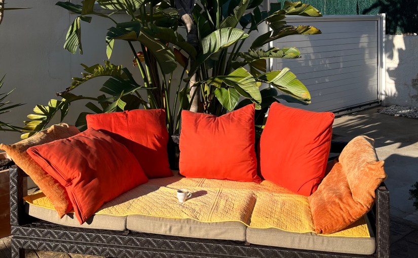 Denken und Lernen brauchen Zeit. Das sagt mir meine Erfahrung und ist auch nicht überraschend. Aber nun verstehe ich auch weshalb. Seit geraumer Zeit frage ich mich, weshalb mich der Umgang mit den sozialen Medien so sehr ermüdet und in der Folge deprimiert. Jetzt, in der Zeit auf meinem Kaffeesofa, ist es mir klar geworden. Ich beobachte hier über die Jahreszeiten hinweg die Pflanzen, wie sie sich verändern. Ich beginne zu verstehen, wann und unter welchen Bedingungen die Zitronen reifen, die Bougainvilleas und die Plataneras blühen. Ich beginne diese Pflanzen nicht mehr allein als Pflanzen, sondern in ihrem Raum und in ihrer Zeit zu sehen und zu verstehen. Ganz anders bei Informationen, die ich über Social Media erhalte. Ihnen fehlt jeglicher Zusammenhang, sowohl der räumliche als auch der zeitliche. Ich kann diese Informationen gar nicht verstehen, denn wirkliches Verstehen braucht Aufmerksamkeit für die jeweiligen Zusammenhänge.